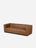 Made for comfort and longevity, it's upholstered in high-quality full-grain leather that is durable and retains the material's naturally occurring texture and graining. Each hide is unique and will age and soften over time, bringing a lived-in feel to your couch.