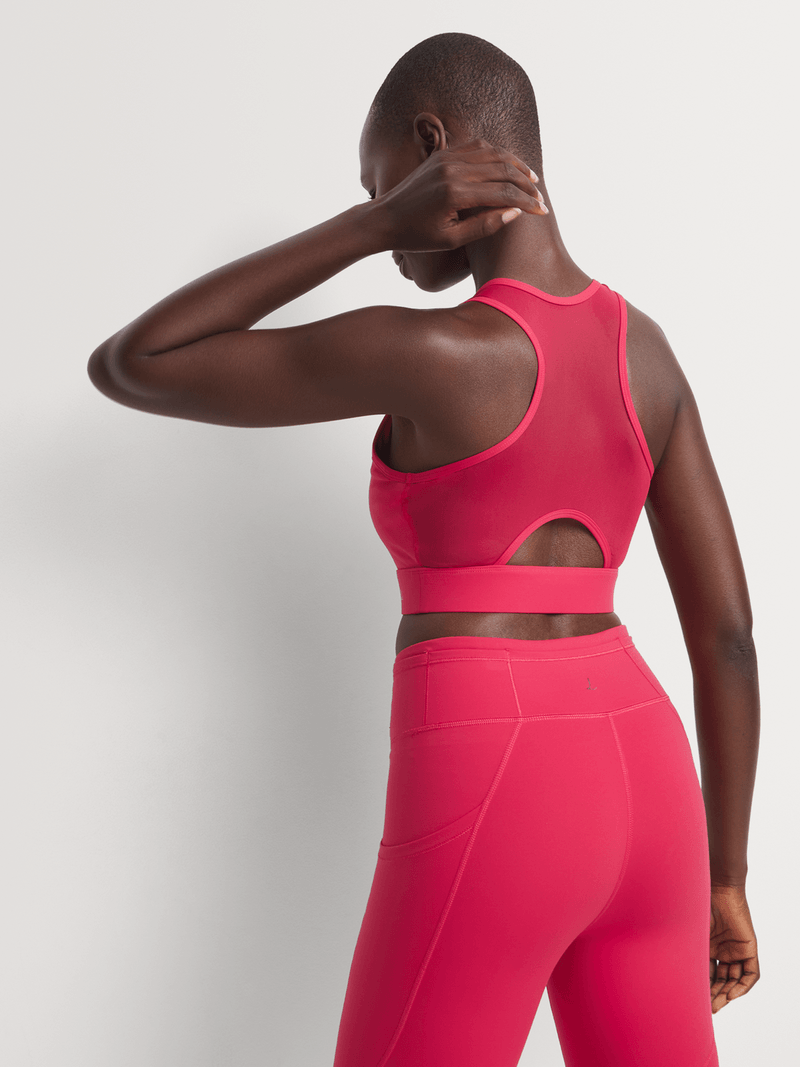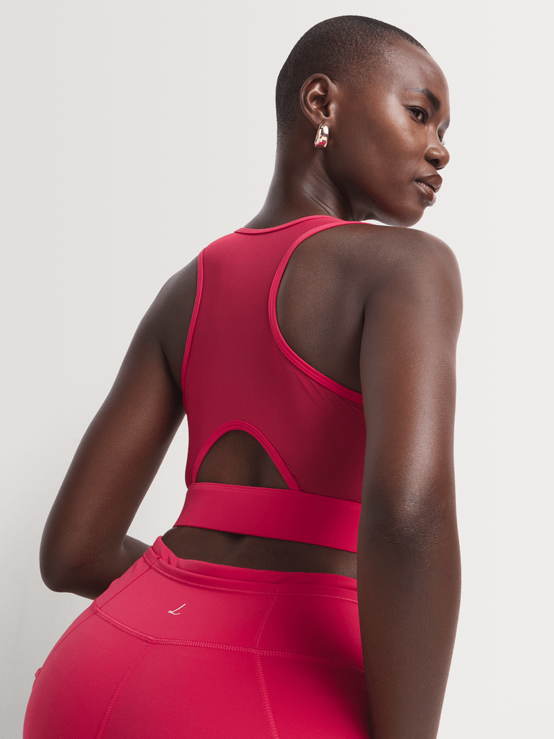 From gym to life, the Luella Athleisure Bra Top is perfect for on-the-go days. Soft and luxurious to the touch, it's designed to provide a compressive, supportive feel, complete with a subtle sheen and stretch for a glove-like fit that moves with you. A breathable mesh back panel elevates this practical piece. Wear it with the coordinating bottoms for a stylish set. Add a lightweight trench or parka and Luella sneakers for a polished look.