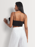 Sophisticated and stylish, the Luella Bow Top is made from crisp cotton fabric with delicate slim straps and a dramatic bow detail for eye-catching style. Dress it up with a smart maxi skirt or tailored trousers, or dress it down with jeans and heels.