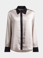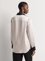 The Luella Contrast Detail Satin Shirt is soft and flowy with a subtle sheen. Wear it with a co-ord suiting set, or with a pencil skirt and heels to the office.