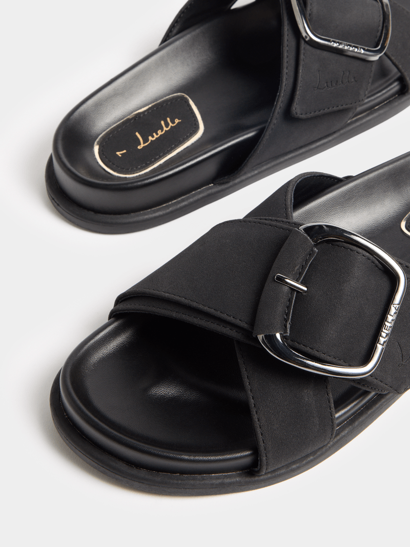 The Luella Cross Over Buckle Slides bring a luxe, laidback aesthetic to your look with their wide cross-over strap and oversized buckle. Style them with co-ord sets, wide-leg denim, or shirt dresses.