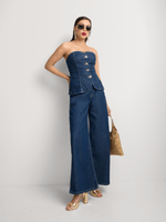 Made with a cotton Tencel blend stretch denim, the Luella Denim Corset Top is comfortable, soft and smooth. Wear this on-trend piece with the matching Luella Denim Wide Leg Jeans