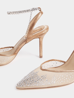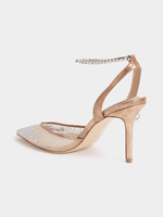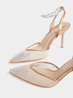 The Luella Diamante Ankle Tie Heels are feminine and delicate with their diamante detail and sheer closed pointed toe. Wear them with a maxi dress for a special occasion or event.