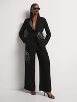 Shine at your next event or occasion in the Luella Diamante Detail Wide Leg Pleated Pants. Wear them with a satin shirt and heels, or pair them with the coordinating Luella Diamante Detail Blazer for a bold two-piece look.