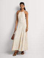 The Luella Embroidered Halterneck Sundress is a timeless addition to your dress collection. Made from a breathable linen-blend fabric, it features delicate embroidery detail for a feminine feel. Wear it with flat sandals or wedges to complete the look.