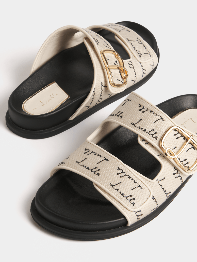 The Luella Embroidery Moulded Sandals offer an elevated take on a classic style. An embroidered repeat logo design and an 'L' buckle on one strap give them a luxe feel. Wear them with Luella maxi dresses and wide-leg trousers.