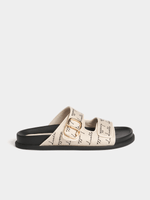 The Luella Embroidery Moulded Sandals offer an elevated take on a classic style. An embroidered repeat logo design and an 'L' buckle on one strap give them a luxe feel. Wear them with Luella maxi dresses and wide-leg trousers.