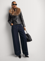 The Luella Faux Fur Collar Pleather Biker Jacket is warm and stylish with its oversized faux fur collar paired with classic biker style. Wear it with wide-leg jeans and ankle boots or with a maxi skirt and heels for a different take.