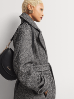 The Luella Herringbone Belted Double Breasted Coat exudes timeless style with its herringbone fabric and classic double-breasted style. Wear it with a smart shift dress and heels to the office, or with dark denim and boots after hours.