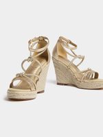 The Luella Knot Detail Open Toe Wedge brings a luxe touch to your outfit with their metallic finish. Wear them with a chic two-piece set, or with a satin midi dress.