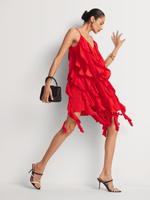 Playful yet stylish, the Luella Mini Frill Dress is the perfect choice for celebrations and special occasions. The classic slip dress style is elevated by a striking all-over frill detail that moves beautifully with you, made for dancing the night away. Complete the look with gold jewellery and strappy stilettos.