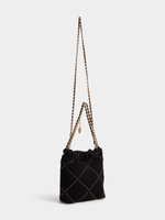 The Luella Mini Stud Bucket Bag brings a luxe finish to your look with its suede-like finish, gold-tone stud detail, and chain straps. Carry it by the short handle or over your shoulder with the longer strap.