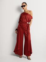A gorgeous two-piece set is a stylish alternative to a dress for a special occasion or event. Wear the beautifully draped Luella Satin Hardware Detail Asymmetrical Top with the matching ruffled trousers for an on-trend co-ord look. Add strappy heels and bold accessories.