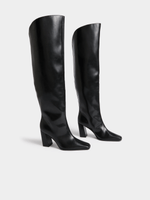 Update your look with the Luella Over The Knee Square Toe Block Heel Boots. These on-trend boots have a sexy and sophisticated over-knee style that looks gorgeous paired with mini-length dresses and skirts.