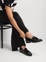Loafers are a classic choice for casual elegance. The Luella Tassel Loafers bring refined style to your outfits with their patent finish and flat, stacked heels. Wear them with smart trousers and a blouse to the office, or on the weekend with jeans and a crisp collared shirt.