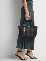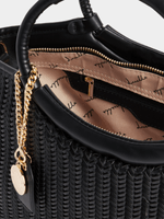 The Luella Weave Mini Shopper Bag is a stylish addition to your collection. The woven finish feels on-trend yet timeless, while the round carry handle is chic and elegant. A gold chain charm adds a luxe touch.