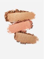 A palette of three deep peach highlighters with a super-creamy powder formula. Enter the next dimension with Hyper Real Glow! This palette packs three hues of highlight for supercharged sci-fi radiance. Warm up in this trio of deep peach shades ideal for deeper skin tones. With a super-creamy powder formula, shades blend effortlessly to leave an ultra-reflective, yet flawlessly smooth sheen.
