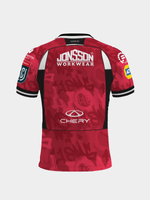 Modern Lions Rugby Design: Classic red Lions rugby shirt with black and white detailing.