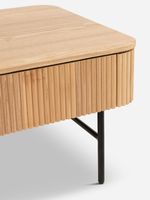 The Madeira Desk brings a contemporary touch to your home with its elegant modern fluting detail, complemented by soft curves and sleek metal legs. The desk features spacious dual drawers for effortless storage Its rich, dark wood finish is complemented by soft, rounded edges adding a refined and stylish flair to any room.