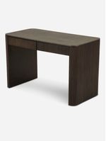 The Madeira Desk brings a contemporary touch to your home with its elegant modern fluting detail, complemented by soft curves and sleek metal legs. The desk features spacious dual drawers for effortless storage Its rich, dark wood finish is complemented by soft, rounded edges adding a refined and stylish flair to any room.