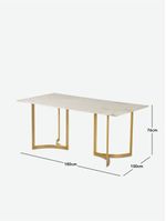 Elevate your dining space with the Madison Dining Table. Made with luxurious marble and brass metal, this 180cm rectangular table exudes elegance. Perfect for dining rooms and comfortabily seats six people.