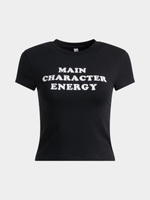 Versatile and on-trend, our Main Character Slogan Fitted Baby Tee is made from cotton lycra in a fitted baby tee style, it has a crew neck, short sleeves and a graphic print slogan across the chest. Wear it with everything from wide-leg pants to joggers, jeans and mini-skirts.