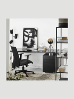 With its elegant matt black finish and stylish chrome frame, the Manchester corner desk is a home office style essential. The three drawer credenza provides ample storage space while the large desk surface gives you plenty of room to get your work done, in immaculate style.