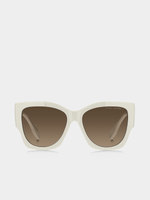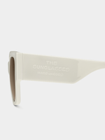 Marc Jacobs' "The Items" eyewear is iconic by nature. These sunglasses channel the brand’s signature aesthetic through a refined, oversized silhouette. Crafted from acetate, they feature three-dimensional "THE SUNGLASSES" lettering printed on the extra-wide temples – a bold nod to Marc Jacobs' style codes. This distinctive logo design is inspired by the cult-favourite Sack, Duffle and Bucket bags and is available in timeless colour combinations to deliver a polished finish.
