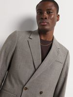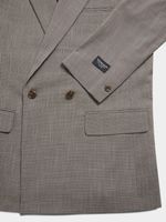 Refine your tailoring with the Markham Double-Breasted Seersucker Check Suit Jacket in Stone/Black. Crafted in a slender silhouette with a contemporary double-breasted front, this jacket updates classic structure with modern detailing. The stone and black seersucker check fabric gives texture and depth while maintaining versatility. Built with a slim fit and PV stretch material for ease of movement.