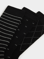 Elevate your sock game with the Markham Men's 3 Pack Geo Stripe Socks. Made from a comfortable cotton blend, these socks feature a stylish micro geo stripe design in classic black and grey. With easy washing instructions, these socks are a versatile addition to your wardrobe.