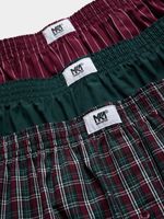 Get comfort and style with Markham Men's 3 Pack Stripe Boxers. Made from a cozy cotton blend, these boxers feature a classic check stripe design in burgundy and forest green. Easy to care for with warm wash, cool iron, and dry cleanable instructions. Enjoy a snug fit and all-day comfort.