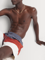 Get ready to make a splash with the Markham Spliced Colourblock Swimshort. This rust-colored swimshort features a unique design that is perfect for a day at the beach or pool. Made from high-quality nylon, it is durable and comfortable to wear. Easy to care for with warm wash instructions. Enjoy the summer in style with this trendy swimshort.
