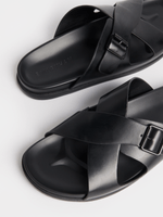 Slip into the effortlessly stylish Markham Men's Black Strappy Mule. Made of durable PU material, these comfortable and versatile shoes are perfect for everyday wear. Their sleek design and easy-to-wear style make them a must-have for any wardrobe.