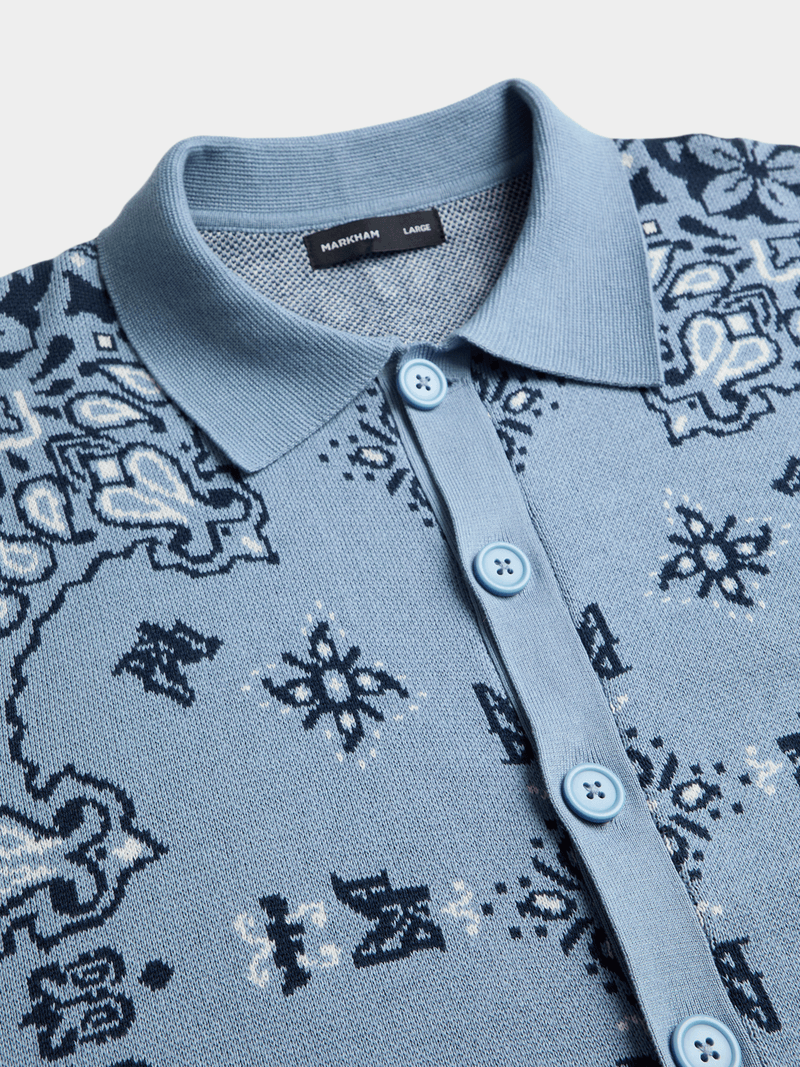 Elevate your casual style with the Markham Men's Botanical Button Through Blue Knitwear. Designed in a lightweight knit, this piece combines comfort with modern sophistication. The button-through front allows for versatile wear, whether layered over a tee or styled on its own. Featuring subtle botanical-inspired detailing and a rich blue hue, it’s the perfect blend of relaxed and refined—ideal for cool summer evenings or smart-casual outings.