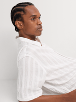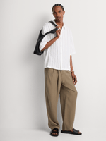 Step into refined ease with the Markham Men’s Boxy Fit Tonal Stripe Ecru Shirt — a minimal statement piece built for warm-weather sophistication. The boxy silhouette gives it a relaxed, contemporary shape, while the tonal stripe texture adds depth and quiet elevation. Light, breathable, and effortlessly polished, this shirt delivers clean summer energy whether you wear it open over a vest or buttoned up for a sharp, understated finish.