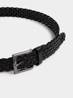 Complete your outfit with the Markham braided bonded leather belt in classic black. Made from high-quality bonded leather, this stylish accessory is easy to clean - just wipe down with a damp cloth. Perfect for everyday wear, this belt is a versatile addition to any wardrobe.