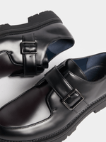 Step out in style with the Markham Chunky Black Two Tone Buckle Shoe. Made from durable PU material, this footwear boasts a bold two-tone design and a rugged buckle detail. Perfect for urban adventures, these shoes are versatile and chic for the modern man on the move.