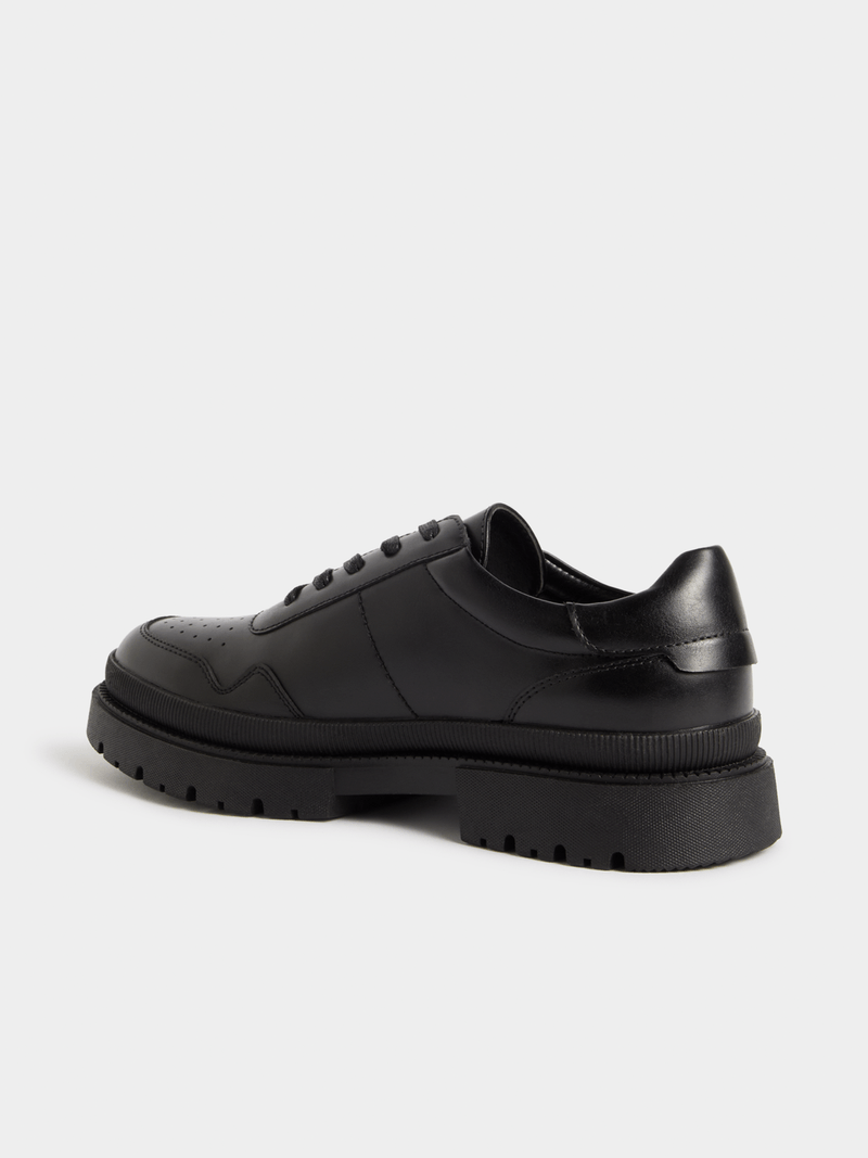 Step out in style with Markham's Chunky Derby Black Court. Made from high-quality PU, this court shoe is a versatile addition to any wardrobe. With its modern design, durable construction, and comfortable fit, you'll be sure to turn heads wherever you go. Perfect for any occasion, this shoe is a must-have for any fashion-forward individual.