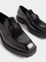 Step out in style with Markham's chunky square toe black loafer. Crafted with PU fabrication for durability, this shoe is both stylish and comfortable. Perfect for any occasion, this versatile loafer is a must-have in every wardrobe.