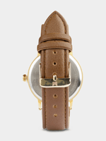 This watch stands out with its richly textured strap, offering a sophisticated look. The sleek round, gold-tone bezel complements its classic white dial, enhanced by bold hour markers for easy readability. A timeless accessory for the modern man.