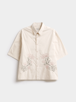 The Markham Men's Cropped Boxy Embroidery Ecru Shirt boasts a relaxed, boxy fit in breathable 100% cotton. Showcasing detailed embroidery patterns, this woven piece exudes effortless style and comfort. It's a versatile addition to any wardrobe, perfect for both casual and refined occasions.