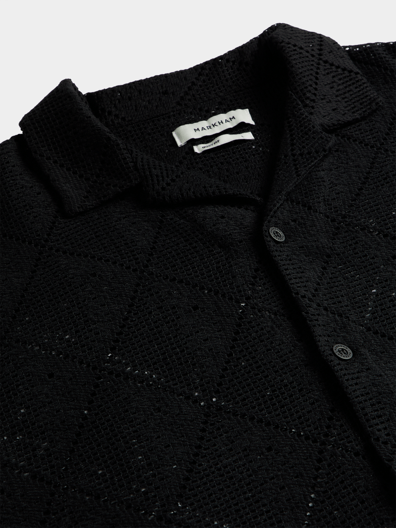 Step into warm-weather confidence with the Markham Men’s Regular Fit Black Crochet Shirt — a breathable, statement layer designed for effortless edge. The regular fit keeps the silhouette clean and structured, while the all-black crochet pattern brings texture, airflow, and modern attitude. Light, open-knit detailing gives it that summer-ready feel, making it the perfect piece to wear on its own or layered over a vest for elevated off-duty style.