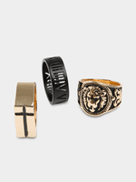 The Markham Men's Double Cross Ring Set in Black Metal offers a bold aesthetic accent for the modern man. Featuring a sleek black finish, these rings showcase distinctive cross designs, emphasizing style and individuality. The 100% metal alloy ensures durability, making them a standout accessory choice.