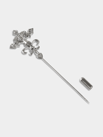 Elevate your formal look with the Markham Dragon Crest Grey Lapel Pin. Made from lustrous metal, this accessory exudes strength and sophistication with its intricate dragon crest design. Ideal for adding a touch of elegance to any outfit.