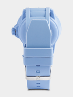 This Markham watch features a sleek, modern design with a vibrant blue silicone strap for optimal comfort. Its bold, minimalist face combines style and functionality, showcasing silver hands and markers that enhance readability. Perfect for elevating everyday looks.