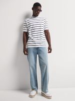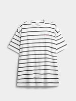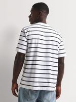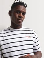 Elevate your casual look with our Markham Embroidered Stripe Cotton Tee. Crafted from soft cotton, this knit tee boasts bold stripes and signature embroidery. Perfect for everyday wear, add this stylish and comfortable piece to your wardrobe rotation.