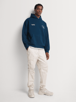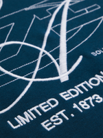 Stay warm and stylish with the Markham teal hoodie. Featuring intricate embroidery and a graphic design, this hoodie is made from brushed fleece for ultimate comfort. Easy to care for with cool wash, warm iron, and dry cleanable instructions. Designed for a regular fit and perfect for cozy days or casual outings.
