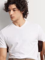 Elevate your collection with the Markham Men’s V-Neck Midweight Essential White T-Shirt. Crafted from 100% cotton, this versatile piece features a classic V-neckline and regular fit for a polished yet relaxed look. Midweight cotton T-shirt with a clean silhouette. Balanced structure and softness for refined everyday style. Essential for any contemporary wardrobe.