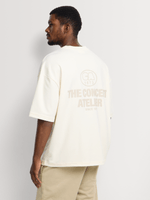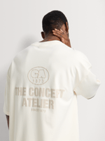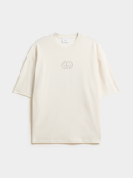 A bold graphic essential with a modern silhouette. This extreme boxy fit T-shirt delivers a structured, oversized look, finished with statement graphic detailing in a versatile natural tone.