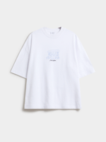 Effortless street-style energy with a clean, modern edge. This extreme boxy fit T-shirt delivers bold proportions and graphic detail for standout everyday wear. Pair with relaxed trousers, denim, or tailored separates for a modern off-duty look.